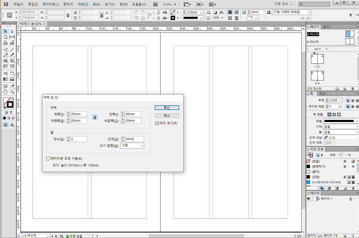 오늘은 인디자인 새면서 만들기 전