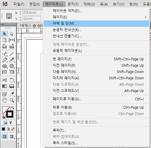 인디자인을 열어서