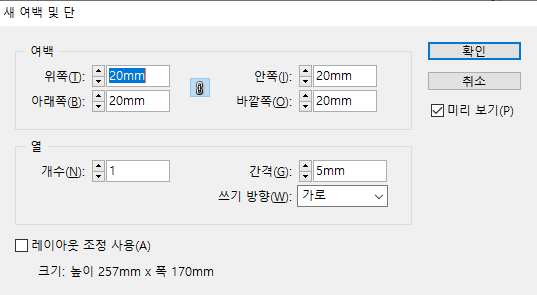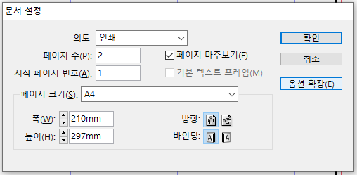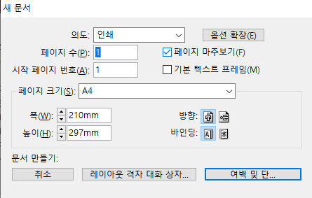 이렇게 새 문서 설정 창이 나옵니다.
