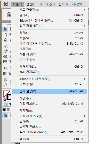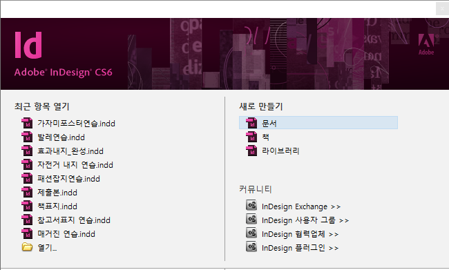인디자인을 열어서