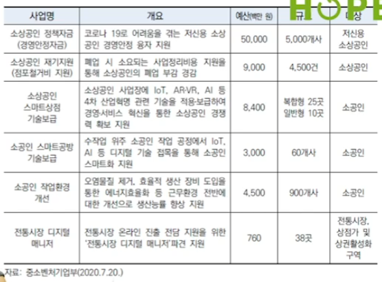 소상공인 온라인 비즈니스 지원 사업에 5년간 1.3조 원, 일자리 12만개를 목표로 추진하고 있다.